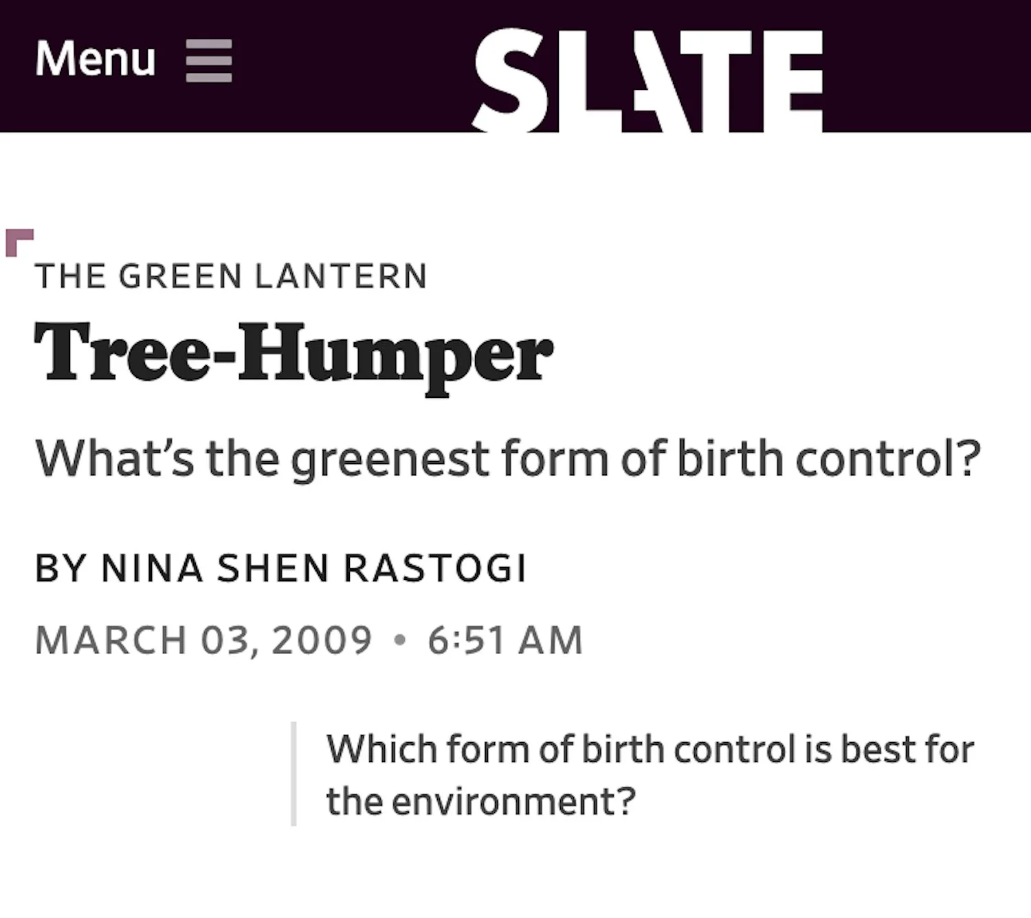 Tree-Humper - What’s the greenest form of birth control?